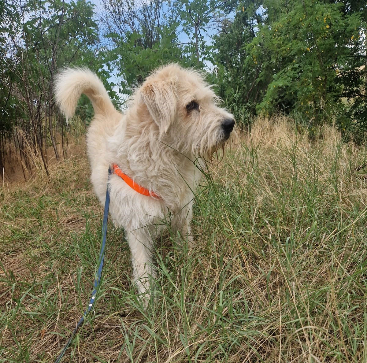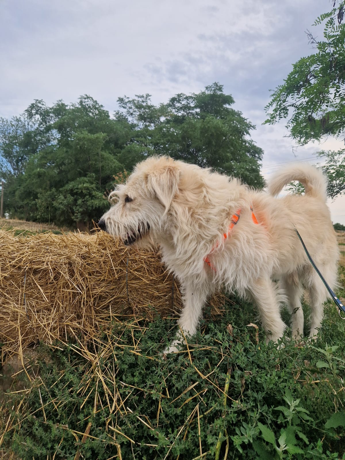 Meine Freundin und ich werden immer mal aus dem Zwinger geholt und dann dürfen wir durch´s Gras laufen. Ich für meinen Teil bin dann immer ganz versessen auf Schnüffeln und suchen. Ach ja, und es ist sooooo wundervoll, wenn diese Menschenfrau mit ihren Händen durch mein schönes, strubbeliges Fell fährt. Streicheln heißt es glaube ich. Hmmm, …ist das toll. Hoffentlich dürfen wir weiterhin die Auserwählten sein, die nette 2-Beiner finden, wo es schön ist und die uns unser eigenes Zuhause geben.