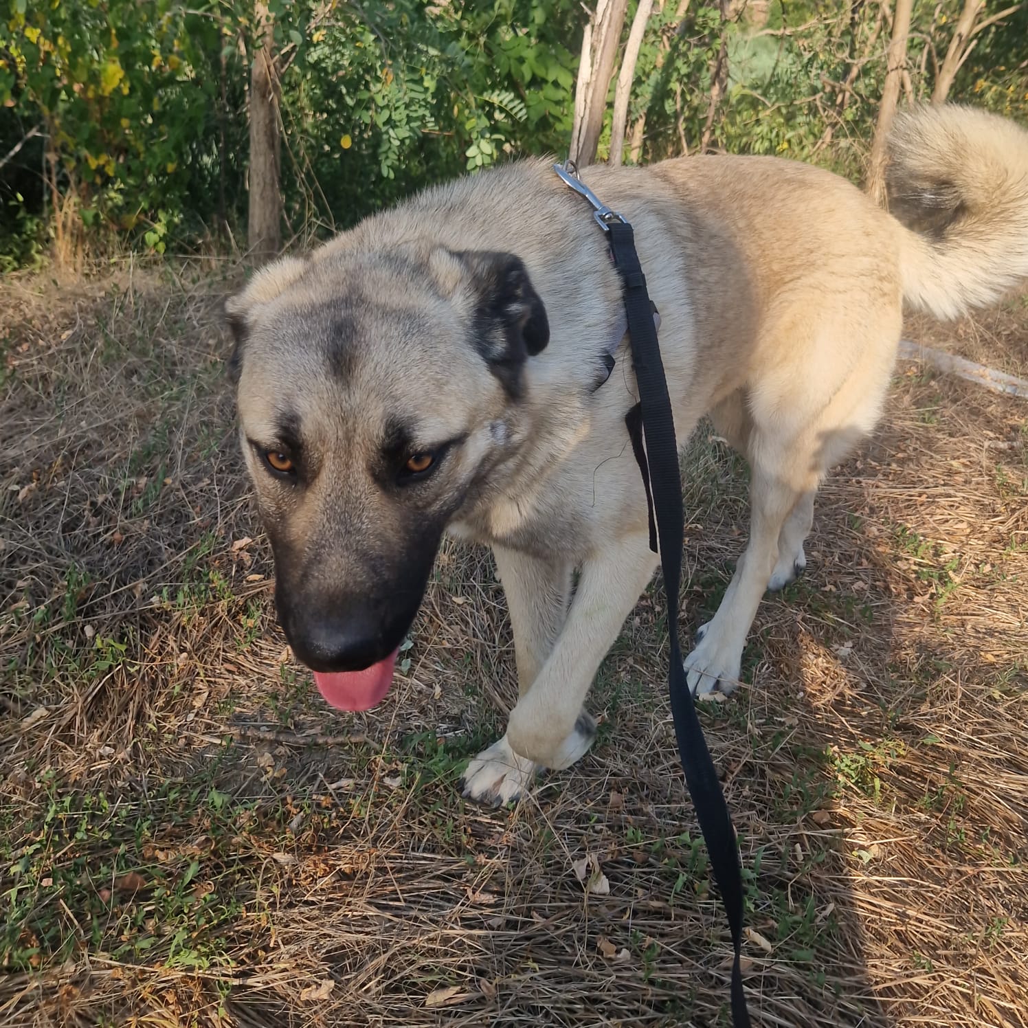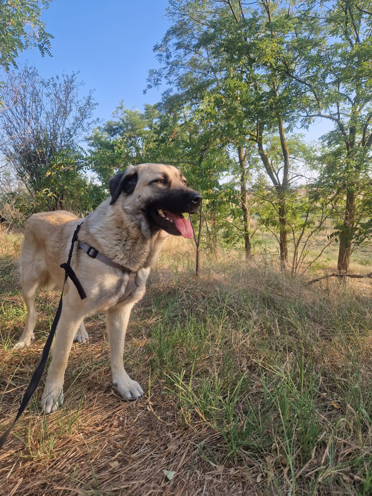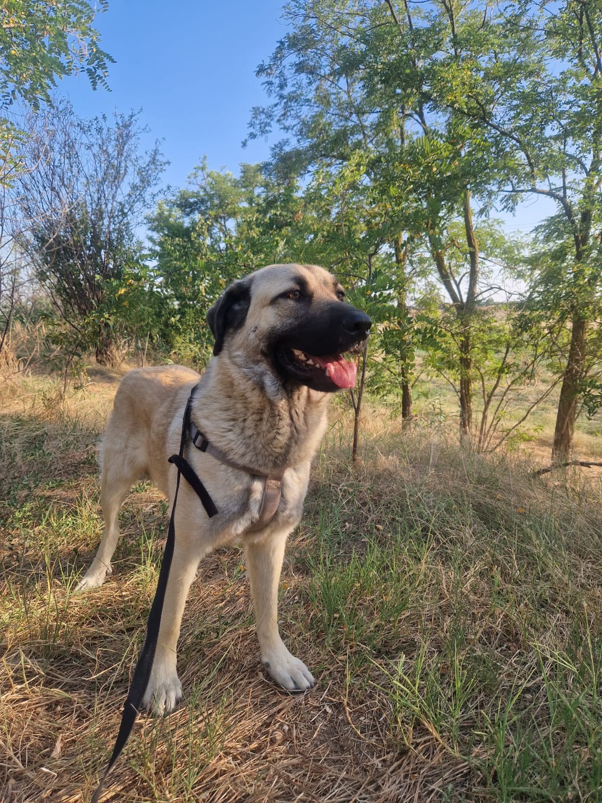 Ich glaube, ich bin ein schon ein bisschen größer, aber ziemlich freundlich, sanftmütig, verspielt und verschmust. Meinen Freund finde ich klasse, also vermutlich auch andere Kumpels. Für Katzen interessiere ich mich nicht.